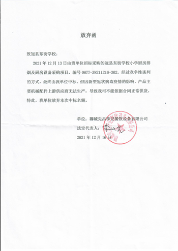 冠縣東街學(xué)校小學(xué)廚房排煙及廚房設(shè)備采購項(xiàng)目廢標(biāo)公告