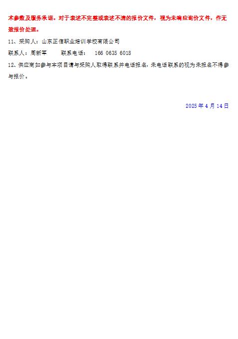 1、采購人:山東正信職業(yè)培訓學校有限公司