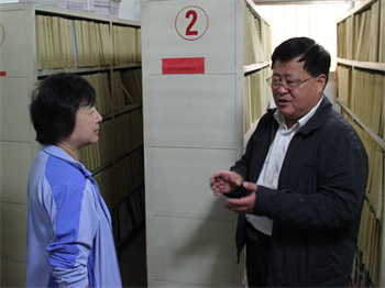 (董事長榮長遠(yuǎn)向任瓏副會長介紹檔案室)