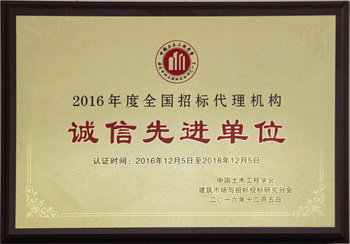 喜訊:11月6日,正信招標(biāo)公司榮獲中國土木工程學(xué)會、建筑市場與招標(biāo)投標(biāo)研究分會頒發(fā)的“2016年度全國招標(biāo)代理機(jī)構(gòu)誠信先進(jìn)單位”稱號。今后,我們經(jīng)繼續(xù)秉承“公開公平公正、科學(xué)技術(shù)嚴(yán)肅”的服務(wù)態(tài)度,為招標(biāo)事業(yè)貢獻(xiàn)力量。