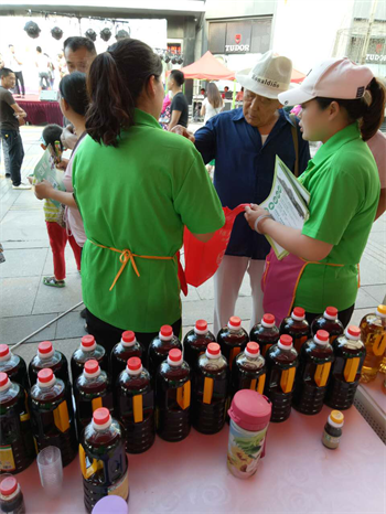 為了回饋和感謝新老顧客的支持與厚愛,我們特別推出全場八折的優(yōu)惠政策,只為服務(wù)大眾,讓更多的市民吃上綠色、健康的調(diào)味品。夏日炎炎擋不住廣大市民購買綠業(yè)春醬油醋的熱情,火爆全場。我們銷售人員和宣傳人員熱情主動(dòng)的給顧客介紹產(chǎn)品的特點(diǎn),零添加、純自然的特性受到廣大市民的高度認(rèn)可。