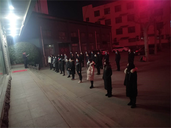 在指令官劉春嶺的一聲號令下,2月17日晚8點,青年公寓員工近50人急步在集團院內(nèi)集合。