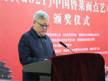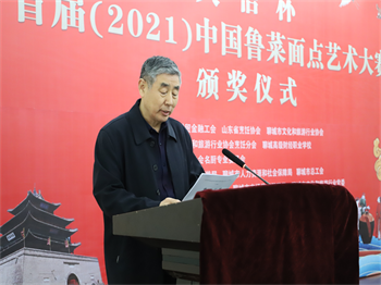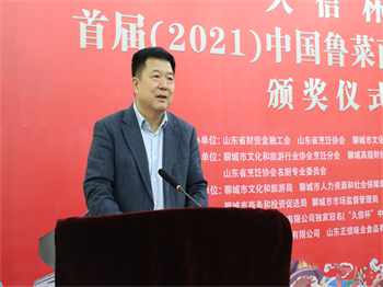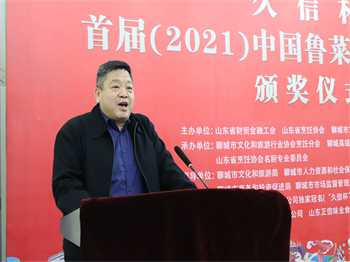 聊城市文化和旅游行業(yè)協(xié)會(huì)常務(wù)副會(huì)長(zhǎng)、秘書長(zhǎng)宋文江同志宣讀“久信杯”首屆中國(guó)魯菜面食藝術(shù)大賽表彰決定