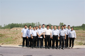 集團(tuán)副總周明臣(右二)向楊廣平書記(左二)匯報(bào)項(xiàng)目進(jìn)展情況