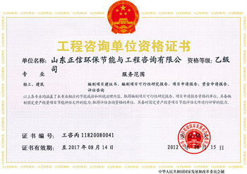 目前,山東正信環(huán)保節(jié)能與工程咨詢有限公司新的資格證書已經(jīng)發(fā)放,內(nèi)容涵蓋乙級的輕工、建筑專業(yè),丙級化工、紡織,生態(tài)和環(huán)境工程,機(jī)械、農(nóng)業(yè)、市政公用工程(給排水)專業(yè),具體包括: