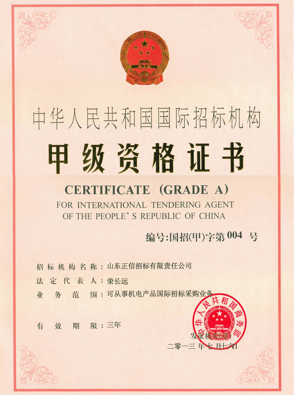 國(guó)際招標(biāo)機(jī)構(gòu)甲級(jí)資格證書 作者:admin 來源: 點(diǎn)擊:次 字號(hào):大中小 上一篇:中央投資項(xiàng)目招標(biāo)代理機(jī)構(gòu)甲級(jí)資格證書 下一篇:政府采購(gòu)代理機(jī)構(gòu)甲級(jí)資格證書 分享到:QQ空間新浪微博騰訊微博人人網(wǎng)分享到微信朋友圈! ? ?